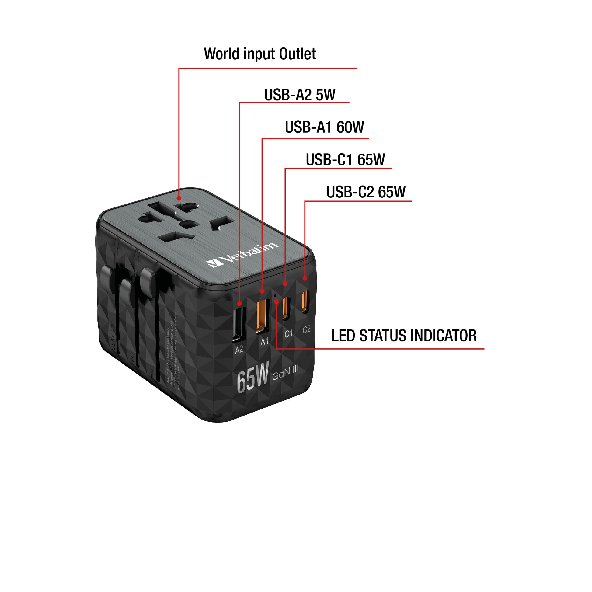 - Verbatim UTA-05 65W GaN III Universal Travel Adapter